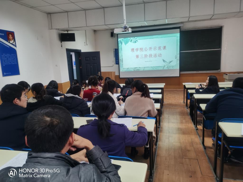 为加强教师间的教学交流,调动教师的教学积极性,发挥优秀课程教学的示范作用,澳门网投官方网站于12月3日下午,在南308教室,举行了本学期公开示范课第三阶段活动。本次公开示范课共有5名副高级职称的教师主讲,全体教师参与了交流研讨。
