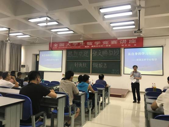 张文鹏教授从自身的学习经历出发,为大家详细地讲解了应该怎样学好数学。他指出,数学是一门具有高度抽象性和概括性的学科。学习数学首先应该培养自己的学习兴趣,热爱这门学科!只有在兴趣的驱动下,才能积极去学习;其次,一定要具备持之以恒的意志,遇到难题不要有畏惧心理,要调节自己的心态克服困难,不要惧怕失败和挫折;最后,张文鹏教授从一些经典的题目入手,经过对题目的剖析,告诉大家学习数学一定要认真深入思考、仔细分析琢磨,只有这样才能看清问题的本质,从而提高分析解决问题能力。