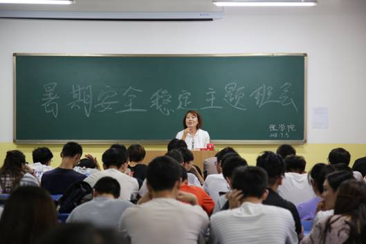 李小光书记做了总结,她强调了四点:第一,确保安全,进行了回家、返校途中及暑假期间的安全教育;第二,做好职业规划,要求全体学生要具有就业危机感,提前规划,提早准备,特别是大三学生收假后要明确自己的就业方向;鼓励学生参加研究生考试。第三,安排好暑假生活,把暑假作为学习生活的加油站,不断自我提升。第四,以德为先,精于学业,做一个有道德、有底线的合格的社会主义接班人。会后,李小光书记与学生会干部逐一做了交流谈话。