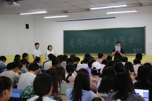 为增强同学们的暑期安全防范意识,提高同学们的安全防范能力,澳门网投官方网站于2018年7月5日下午4:30,在南楼405,召开“暑期安全稳定”主题班会,出席此次班会的有澳门网投官方网站党总支书记李小光、团总支书记杨陈东、潘灵刚老师以及澳门网投官方网站全体在校学生。
