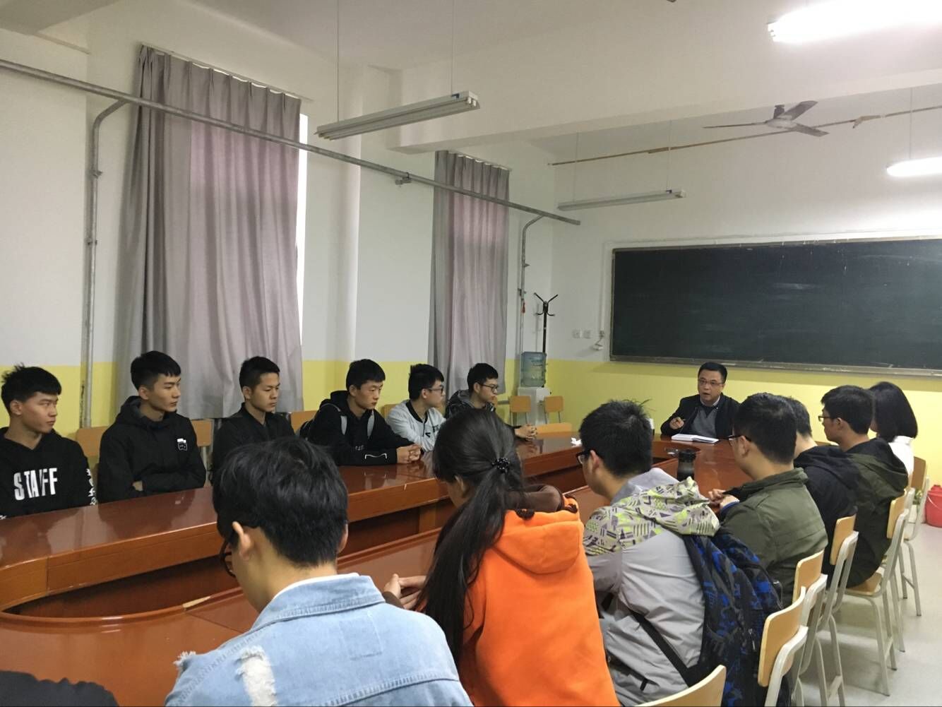 会议开始,首先曹老师向同学们描述了研究生的就业前景以及考研两个字的具体含义,为同学们理清了考研的动机,让同学们更加清晰的认识当今考研的形势。之后每位到场的同学依次发言表示自己理想的学校及专业,并交流了考研复习计划以及复习心得。最后曹老师总结道,澳门网投官方网站非常重视第一届学生的就业考研等工作,同学们不应为目标而活着,要根据自身的特点制定复习计划以便学院可以更好的帮助到每一位同学。