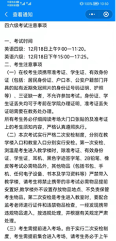 6月14日,澳门网投官方网站学生管理科通过“我在校园”平台,对全院同学发起四六级考试倡议书,包括四六级考试注意事项、致全国大学英语四六级考试考生的公开信等。(文、图/自律部 审核/李扬)