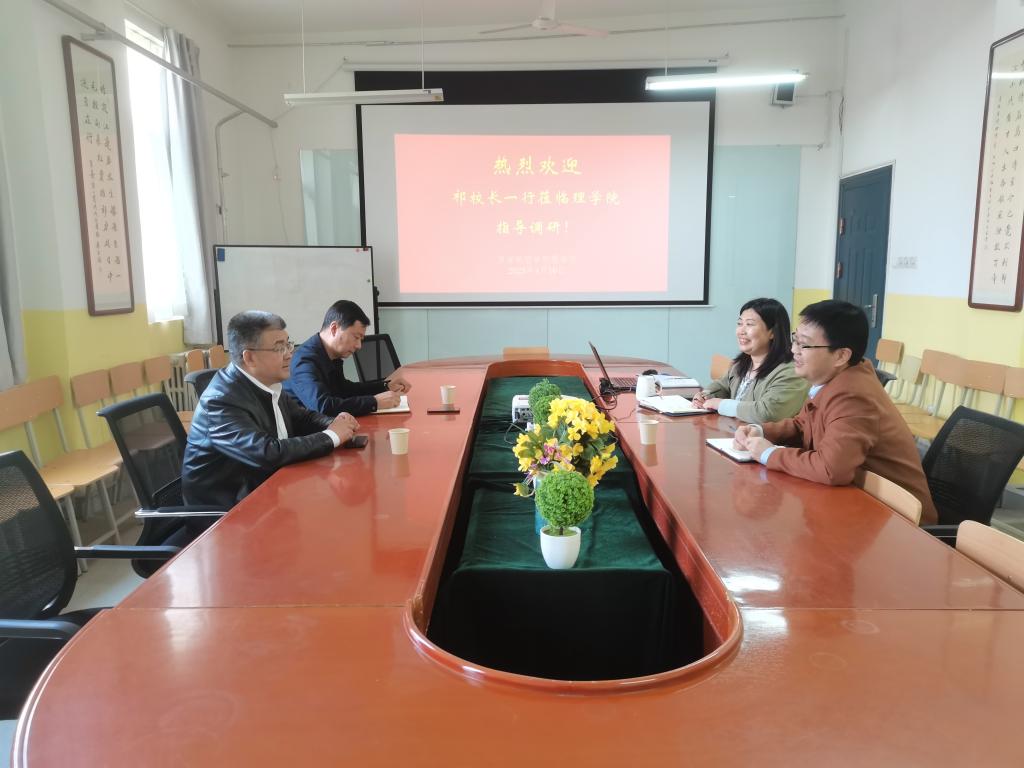 4月10日下午,校长祁玉龙莅临澳门网投官方网站调研指导工作,并召开座谈会,党政办公室主任李永刚随行。澳门网投官方网站院长李小光、党总支书记胡红亮、综合办公室主任等参加座谈会。