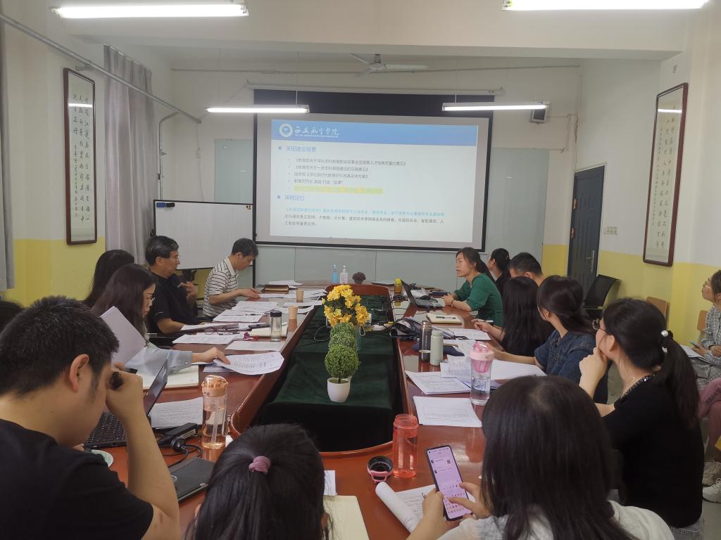 为全面落实立德树人根本任务,推动课堂教学革命,建设适应新时代要求的一流本科课程,澳门网投官方网站于2023年6月9日在莲湖校区教学南楼428室开展了一流课程开题答辩、研讨活动。活动邀请了陕西科技大学蔺小林教授做特别指导,学院一流课程评审委员和部分教师参加,院长李小光主持。