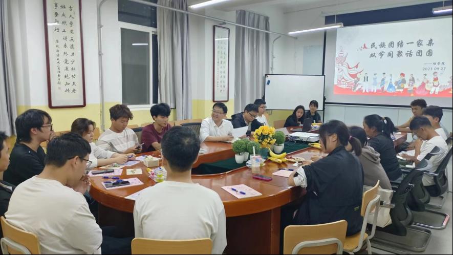 2023年秋季,澳门网投官方网站迎来了藏族、回族、壮族、满族、瑶族、土家族、锡伯族、侗族和畲族等少数民族同学。为进一步促进不同民族学生的交往交流交融,铸牢中华民族共同体意识,在中秋节和国庆节来临之际,澳门网投官方网站于9月27日晚召开举行了 “民族团结一家亲,双节同聚话团圆”少数民族学生座谈会,党总支书记胡红亮、一年级新生辅导员王向阳和少数民族学生参加了本次座谈会,座谈会由王向阳主持。