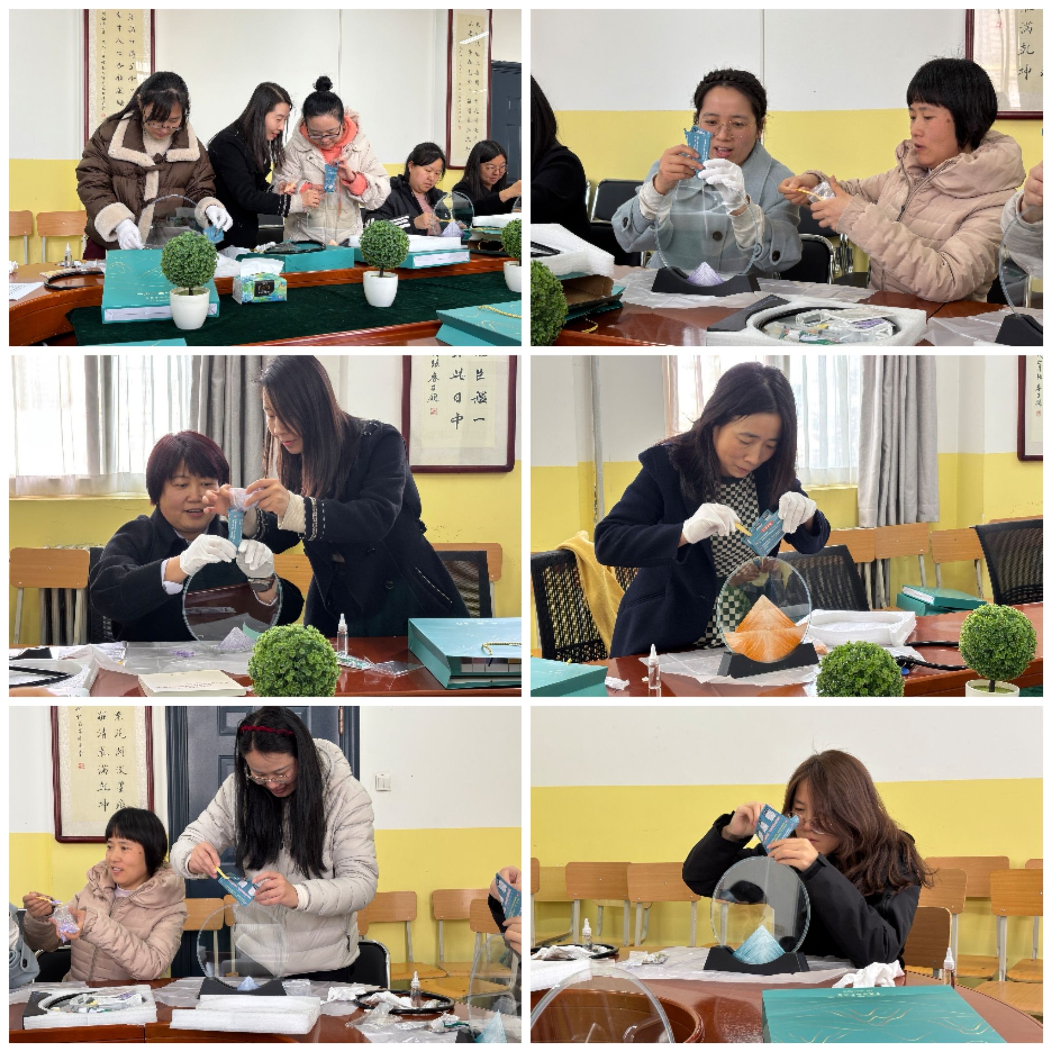 制作过程中,教师们相互交流、互相帮助,分享着创作的心得和喜悦。大家暂时放下了工作的疲惫和压力,沉浸在流沙画的艺术世界中,尽情享受着这难得的休闲时光。现场欢声笑语不断,充满了浓厚的节日氛围。