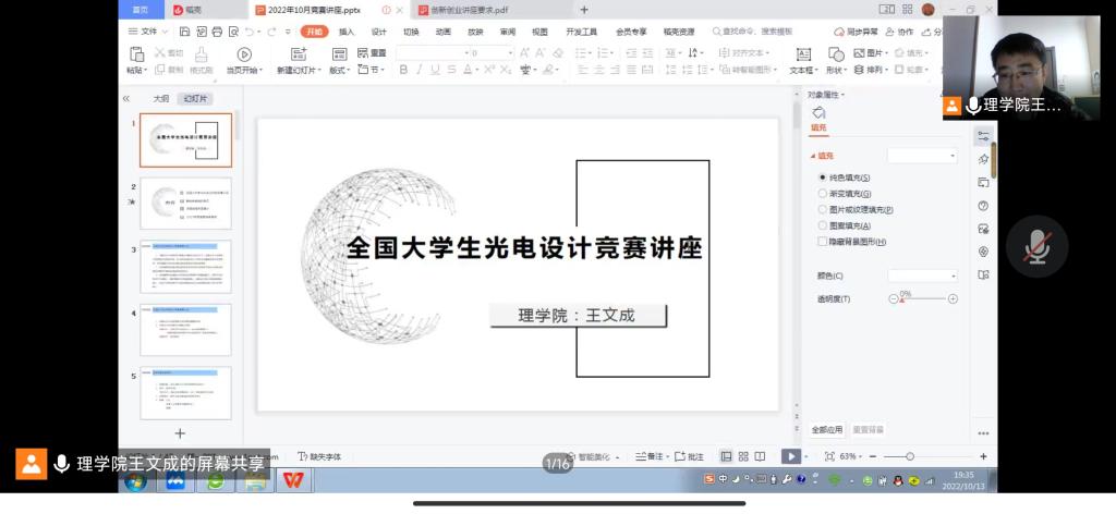为了提高学院大学生基础学科应用水平,激发大学生创新意识,鼓励广大学生积极参加学科竞赛,10月13日,澳门网投官方网站利用线上教学平台为澳门网投官网学生举办了“数学建模与竞赛”“全国大学生光电设计竞赛”讲座,来自全校各院系的500多名学生参加了讲座。本次讲座由数学建模竞赛项目负责人张蒙和光电设计大赛项目负责人王文成主讲。