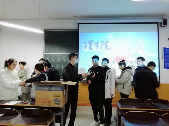 为进一步加强疫情期间学生的安全防护,2021年11月24日晚七点,澳门网投官方网站于南楼307教室向全体同学发放冬日暖心防疫物资,参加此次活动的有澳门网投官方网站学生管理科科长李扬、辅导员张岩及澳门网投官方网站各学生宿舍舍长。