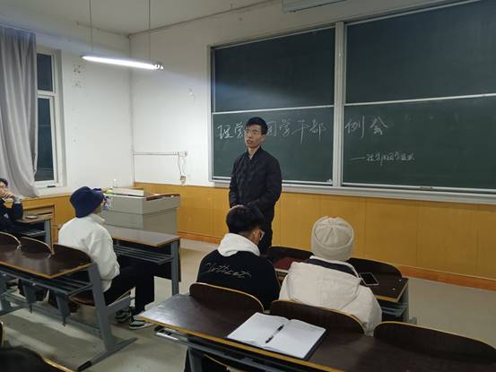 2021年11月14日下午6时,澳门网投官方网站在教学南楼307教室召开了以“走出舒适圈,建立朋友圈”为主题的团学干部工作会议。澳门网投官方网站团总支书记、辅导员张岩和全体团学干部参加了本次会议,会议由王文科主持。