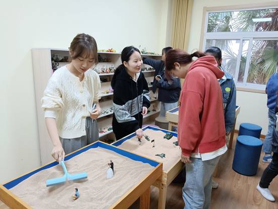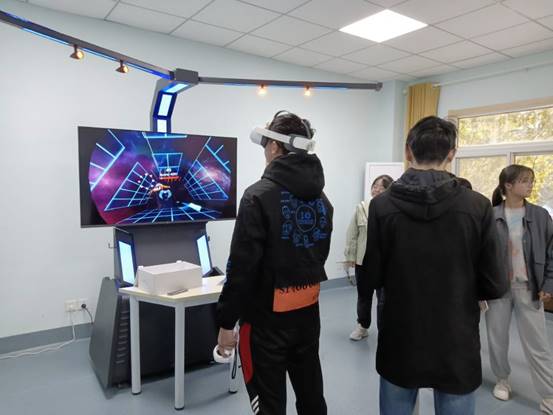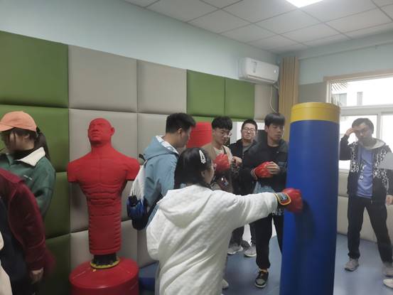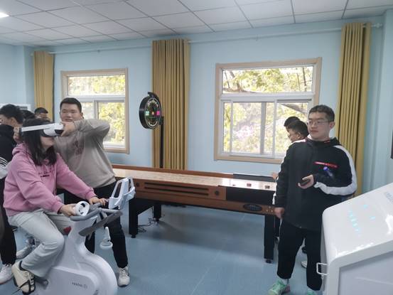 参观过程中,同学们在VR综合功能室里,体验VR智能运动身心调节训练系统,戴上VR眼镜,沉浸式感受科技带来的缤纷世界。在沙壶球桌旁,将沙壶球推向长桌尽头,感受把握力量带来的快乐。在沙盘游戏室中,同学们在沙盘中表达自己的内心世界,堆砌出不同的心灵创作。在情绪宣泄室时,同学们戴上宣泄手套,通过击打宣泄墙,立式宣泄靶等宣泄器材,体验宣泄负面情绪带来的舒畅感。参观时,同学们秩序良好,根据组织人员的安排有序分散在不同功能的活动室,保证每位同学都能接触并了解心理咨询中心的各种功能。