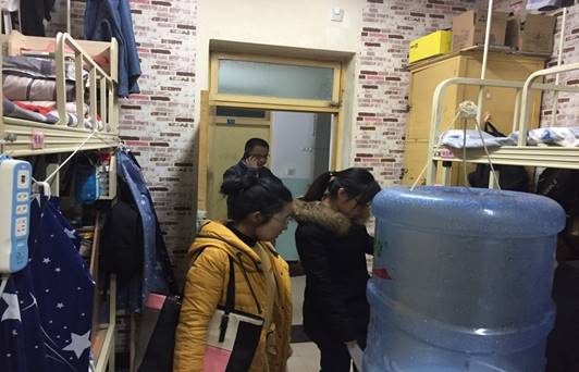 同时,老师们建议同学们要勤通风,多喝水,勤清洗衣服、被子,养成良好的卫生习惯,并提醒同学们用电安全,让同学们添衣保暖注意身体健康。直至所有宿舍都符合要求后,班主任们才离开。