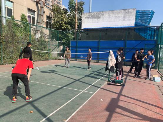 10日中午12点,老师和同学们在预定好的篮球场、羽毛球场进行运动。老师和同学们换上了运动服,奔向自己喜爱的体育项目场地。老师精心为同学们准备足够的体育器材,篮球场上,同学们自发组成的团队进行着一场友谊赛,两队打得精彩十足,抢球投篮,连连得分,上演了一场精彩的篮球赛。再看羽毛球场,曹建波老师和同学们正如火如荼地进行羽毛球赛,没有任何比赛规则限定,大家在酣畅淋漓的比赛中享受着点点滴滴的欢乐,在体育活动场上,平日里严肃的老师一展亲切活泼的一面。