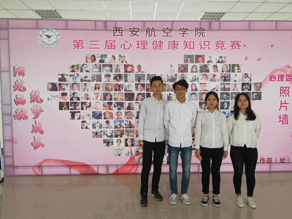 5月29日,由学生工作部(处)主办,飞行器学院承办的澳门网投官方网站第三届“心海翱翔,扬帆起航”心理健康知识大赛决赛在阎良校区报告厅举行。黄诚英、孙博、刘瑱疆、曹盼盼四位同学组成的“知心”战队代表澳门网投官网参加了此次比赛。