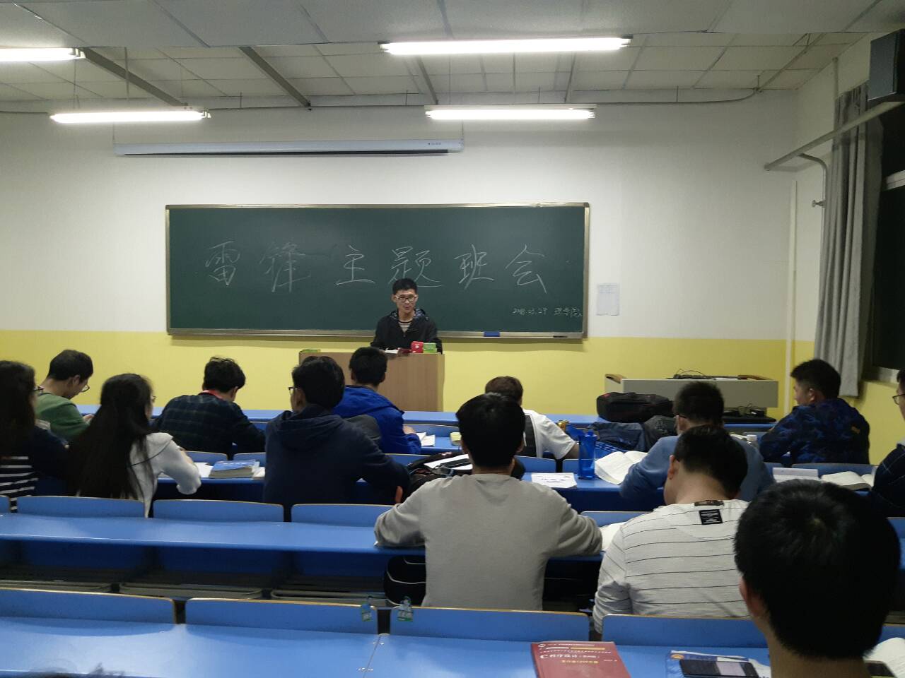 班会上,青年志愿者部李和庆为大家介绍了雷锋同志的生平事迹,学习了雷锋的名言及精神。李和庆深情解说,仿佛将同学们带回到了那个年代,也使同学们体会到雷锋精神对于构建和谐社会的价值及意义。