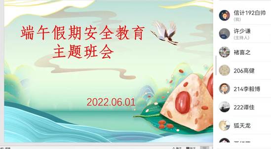 2022年6月1日,澳门网投官方网站各班级通过线上线下相结合的方式组织召开了端午节假期安全教育主题班会。班会由各班主任主持。