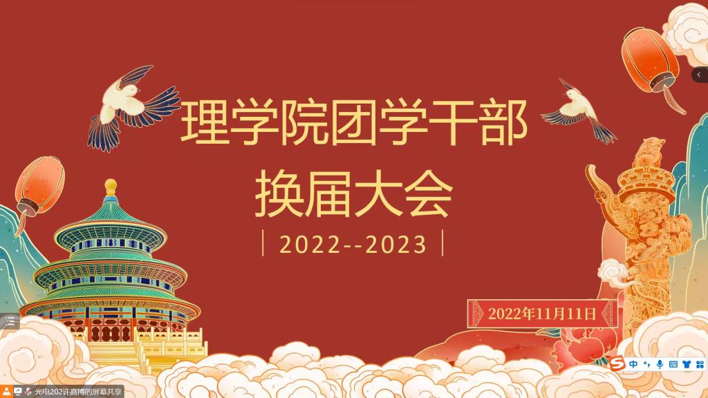 2022年11月11日下午18点,澳门网投官方网站于线上召开团学组织换届大会。澳门网投官方网站团总支书记、辅导员张岩和全体团学组织成员参加会议。会议由许高博主持。