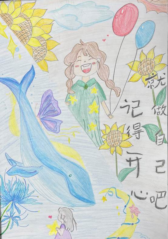 活动伊始,主持人宣读了活动的主题和规则,并将参与者分为若干小组完成作品绘画。大家领取到画纸后纷纷用笔勾勒出了自己内心的情感,有的作品色彩纷呈,展示了自己内心的丰富多彩;有的作品则简单且细腻,展示了自己内心的文雅。现场愉快欢乐的氛围极大地缓解了同学们的心理压力,并增强了参与者间的交流。