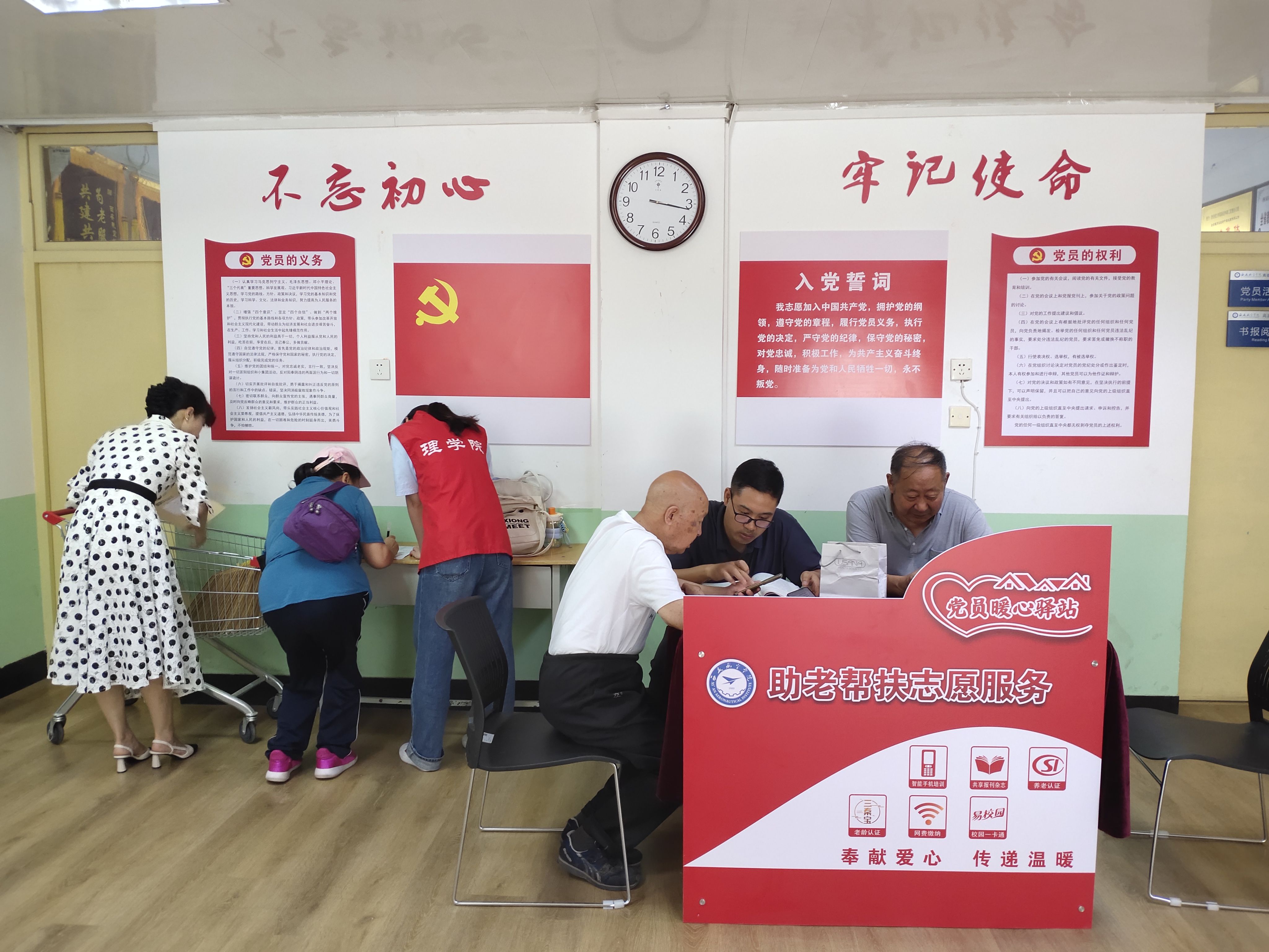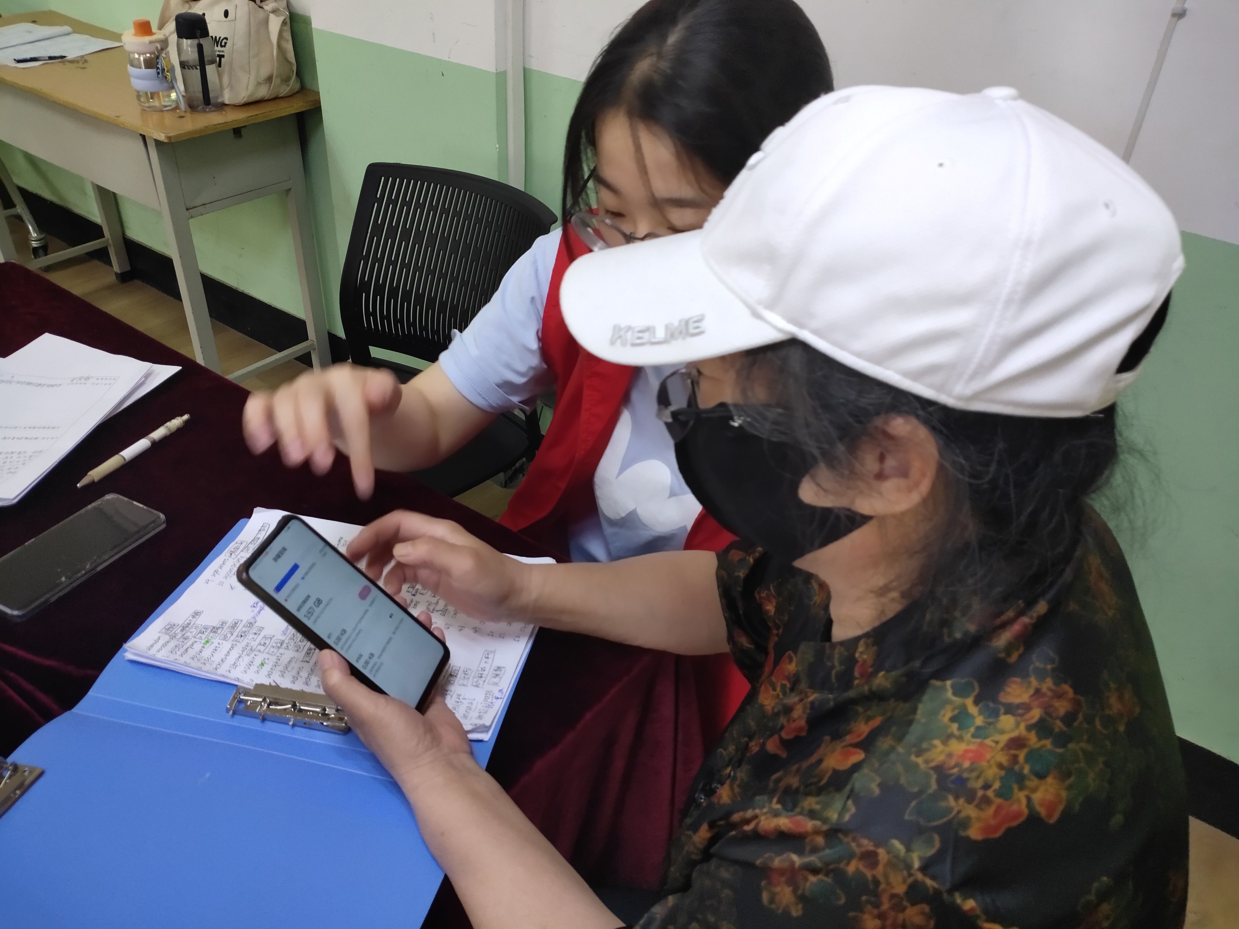 活动刚开始,离退休处的老人们就络绎不绝。老人们在志愿者的帮助下,利用职能手机通过线上进行养老保险和高龄补贴认证,“请拿出您的身份证,需要拍一下照”“请摇一摇头,进行人脸识别”……在志愿者们热情与耐心引导下,一步步按照系流程顺利地完成了养老待遇资格认证登记和“三秦宝”高龄补贴年审认证,老人们脸上纷纷洋溢着微笑。在认证的同时志愿者们还与老人亲切交谈,询问老人手机中是否还有其他不会操作的地方,耐心地解答问题。从如何连接Wi-Fi开始,逐步引导老人们了解并掌握手机里的设置功能。同时,还详细讲解了如何扫码加好友、扫码缴费等实用操作,以及如何建立微信群、修改群内昵称等社交技巧。