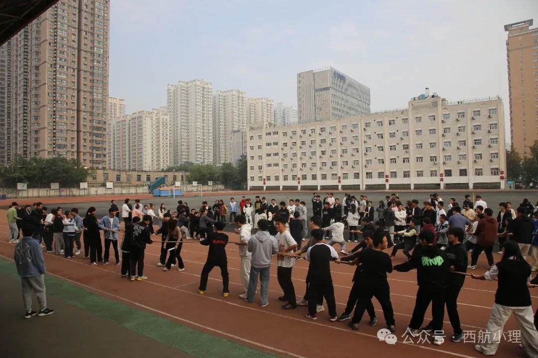 “集体拔河”项目紧张刺激,需要力量与智慧的加持,各班级团体成员们共同努力,激发了极强的团体凝聚力。