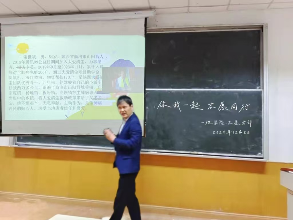 志愿者部负责人王雨晴介绍了国际志愿者日的起源。1985年12月17日,第四十届联合国大会决议将每年12月5日定为“国际志愿者日”,旨在唤起更多人投身社会发展与经济建设志愿服务。随后,活动重点分享了三秦楷模的志愿事迹。谢世斌多年为尘肺病家庭四处奔走,他积极联系慈善机构、组织公益募捐,为患者家庭带去希望;朱先萍组建护河队,清理河道垃圾、检测水质,同时向周边居民宣传环保知识,有效提升了当地居民环保意识并改善了生态环境;张雷威连续 19 年参与扶贫工作,深入贫困家庭了解需求,精准施策,助力群众脱贫致富。这些事迹深深触动了同学们,大家积极表达自己了的感想,光电信息232班王韵超表示:“谢世斌的坚持让我明白,帮助他人无需惊天动地,日常点滴亦能彰显大爱,我会从身边小事做起践行志愿精神。”同学们也都纷纷表示,此次活动不仅激发了他们参与志愿服务的热情和动力,也让他们深刻领悟到,志愿服务并非遥不可及的崇高理念,而是实实在在、触手可及的温暖行动,每个人都能成为传递爱与希望的使者。