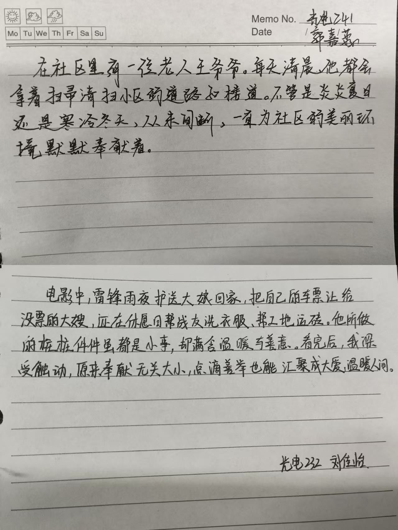 活动伊始,自律部负责人张洋就雷锋精神的时代意义进行了阐释,并呼吁同学们要像雷锋一样,心中有信仰、脚下有力量,用实际行动诠释“奉献、友爱、互助、进步”的志愿精神 。随后,来自全院各年级的10位选手依次登台进行朗诵。光电232张渠将散文《背影》改编为朗诵作品,通过对话形式展现雷锋与当代青年的精神共鸣;信计242薛哲创作三行诗《微光》,以“脚步丈量土地,双手托起希望”凝练奉献精神;信计243郑博宇结合校园志愿服务经历,朗诵原创作品《青春志愿行》,朴实话语传递公益温度;光电232刘孟蕊用方言朗诵《雷锋在故乡》,以乡音拉近榜样与生活的距离……朗诵会现场气氛十分热烈。选手们通过经典重现、诗歌改编等形式,多角度诠释雷锋精神内涵。