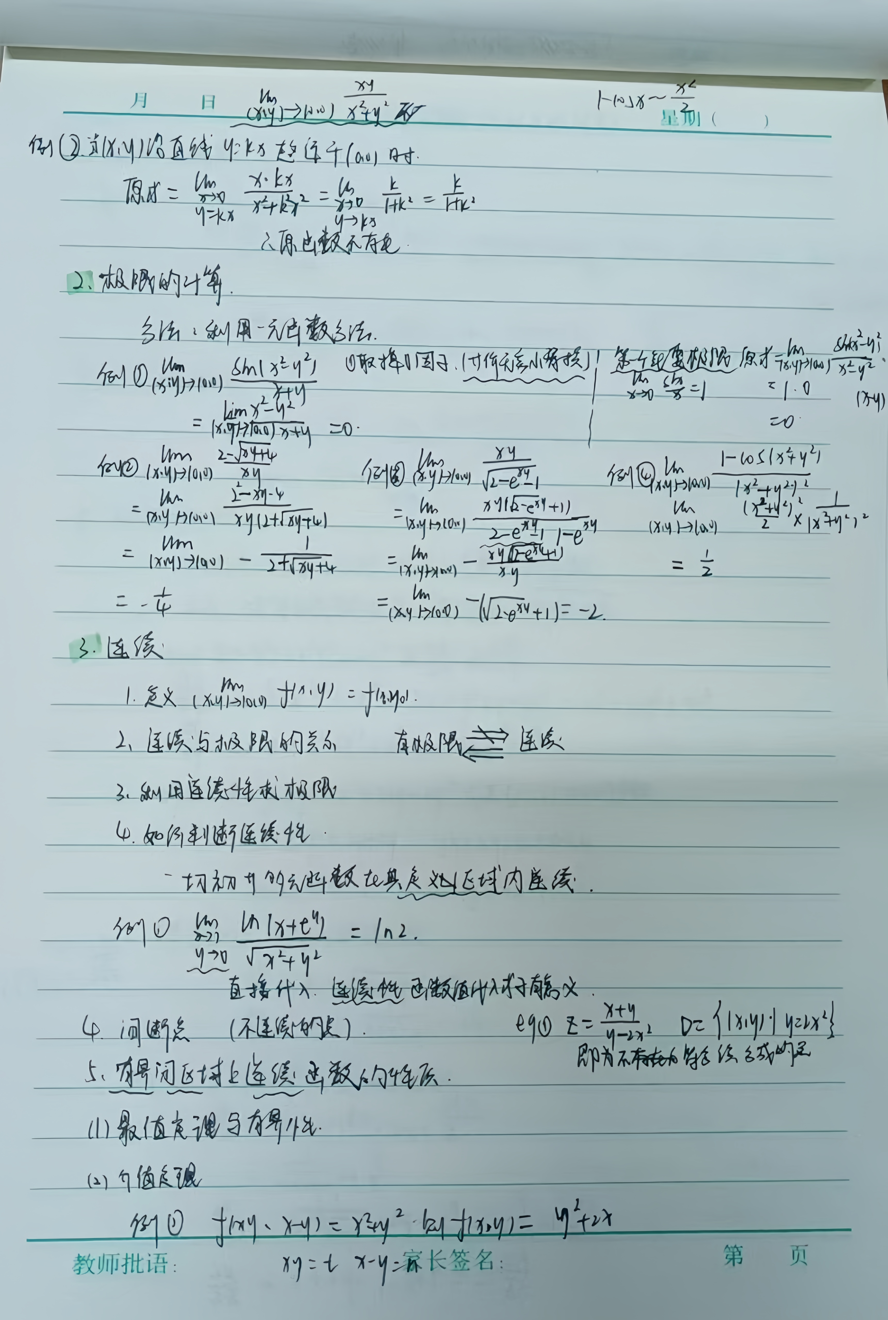 贠思彤同学的笔记结构清晰、逻辑严谨,通过精炼的公式和直观的标注,将复杂的数学理论转化为易于理解的框架。