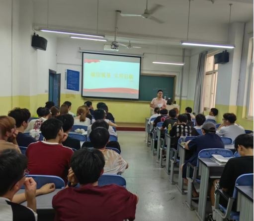 为严肃考风考纪,营造公平公正、积极向上的学习氛围,引导广大学生树立正确的价值观和学业观,在澳门网投官方网站学工办的安排下,各班级根据不同教学、考试进度于6月16日-7月11日组织开展了以“诚信筑基、文明启航”为主题的教育班会。旨在通过深入学习和警示教育,强化学生诚信意识,树立严谨学风。