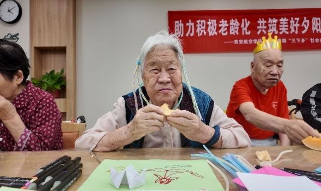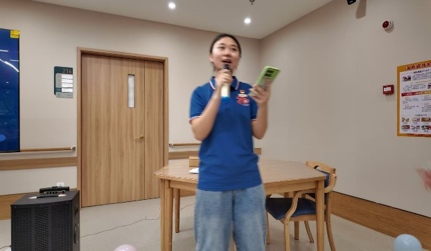 手工的余温尚未散去,《映山红》的前奏骤然响起,像一把钥匙,瞬间打开了记忆的闸门。年轻志愿者们清澈的歌声甫一响起,便有老人不自觉地跟着哼唱起来,手指在膝盖上悄悄打着节拍。当熟悉的旋律流淌,《东方红》等经典老歌引发现场更深的共鸣,皱纹舒展,目光闪亮,掌声和着节拍,一种跨越时空的情感在空气里流动。80多岁的李爷爷忍不住高声夸赞:“好!孩子们唱得好!这些歌,一听就回年轻时候喽!”他的赞誉响亮而直接,眼神里跳动着抑制不住的亮光。