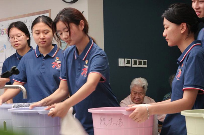 用生命教育淬炼青年担当。7月18日起,实践向心灵深处掘进。辅助关节康复时的每一次托举,为行动不便者洗脚时的每一次俯身,都在消弭代际隔膜。学生日记里写道:“当奶奶的手自然搭在我肩头,那沉甸甸的依靠感,胜过千言万语。”