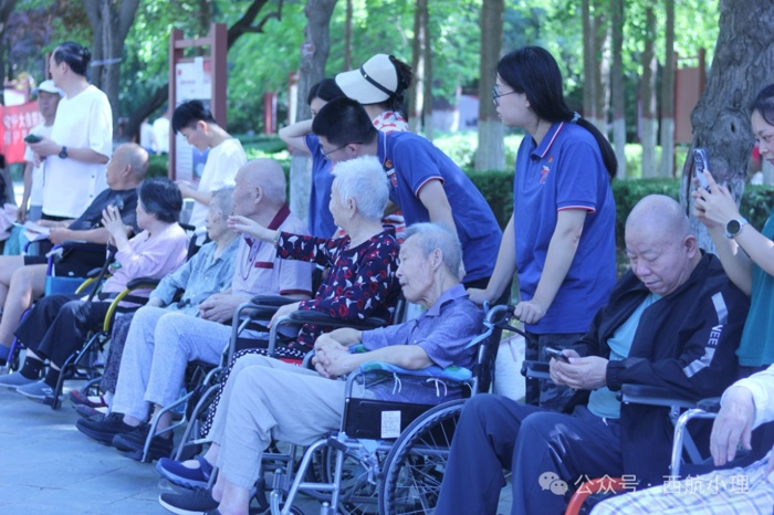 前往公园的路上,志愿者们有序列队,推着各自负责的爷爷奶奶稳步前行。阳光毫无保留地倾洒而下,给老人的银发镶上金边,他们脸上漾开的笑意,比阳光更耀眼。路过的行人纷纷驻足,或报以微笑,或竖起大拇指,这无声的认可,似一股暖流,流淌在每个人心间,成为志愿路上最美的注脚。