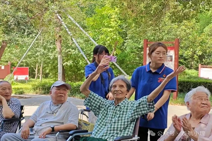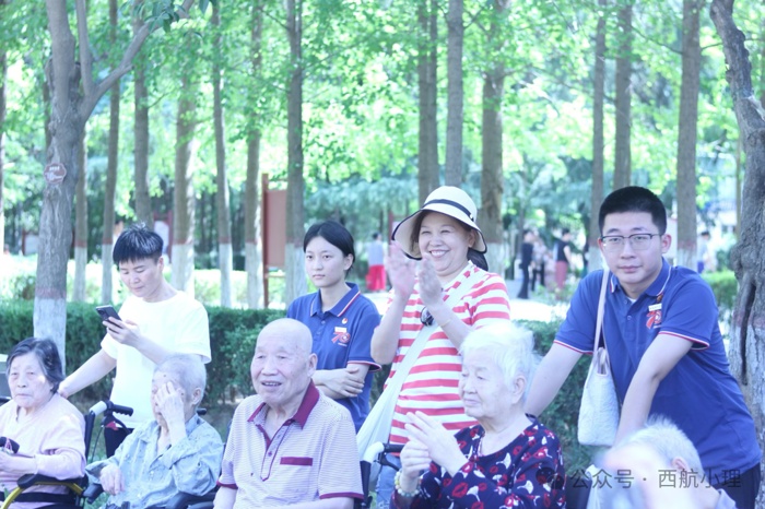 抵达公园,志愿者们贴心地将老人推至阴凉处。随着音响轻响,张奶奶率先亮嗓, “雄赳赳,气昂昂,跨过鸭绿江……” 饱含深情的歌声,瞬间点燃氛围。刘奶奶跟着旋律,挥动起手臂,似在为往昔岁月打节拍;王爷爷围坐在志愿者中间,绘声绘色讲述当兵时的烽火故事,那些热血片段,透过他的讲述,在年轻人们心中重映;还有奶奶偶遇多年未见的老友,惊喜的呼喊、紧紧相握的双手,把岁月沉淀的情谊,演绎得淋漓尽致。片刻后,志愿者组织起健身操活动,长者们认真抬手、踢腿,一静一动间,满是对生活的热爱,也让这份陪伴愈发鲜活。
