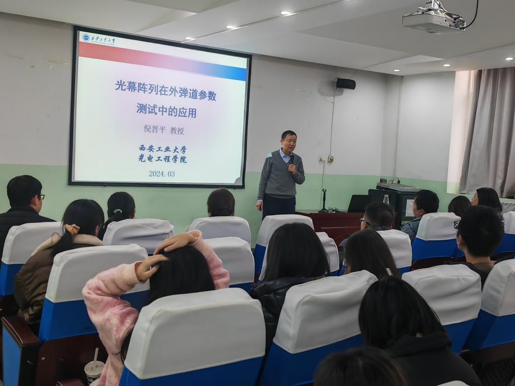 为拓宽学生视野,营造良好的学术氛围,促进新知识、新技术的传播,提升教师专业技术水平、激发学生科研学术热情,3月8日下午,澳门网投官方网站邀请西安工业大学倪晋平教授在南108做了题为《光幕阵列在外弹道参数测试中的应用》的专题讲座。澳门网投官方网站院长李小光、副院长丁琦、全体物理教研室教师及光电专业学生等200余人参加了此次讲座,讲座由李小光主持。