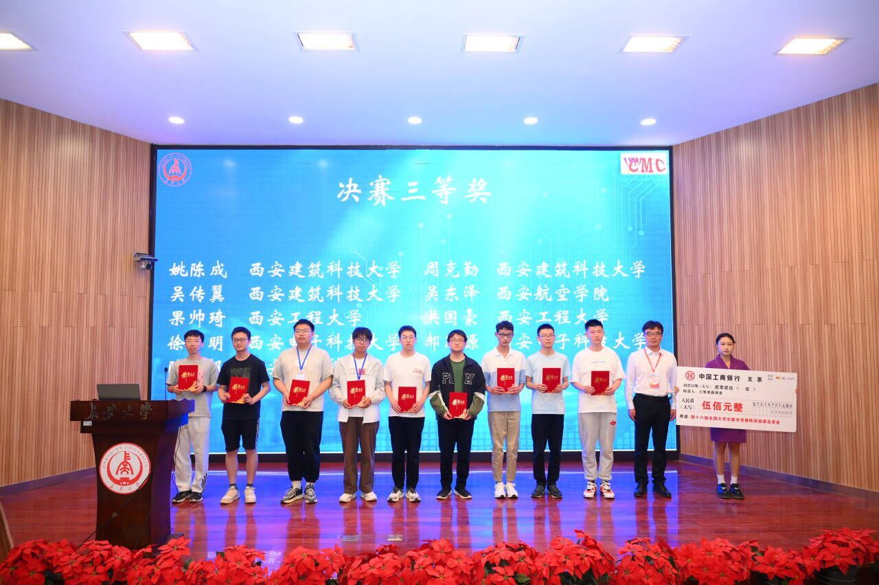 近日,第十六届全国大学生数学竞赛陕西赛区颁奖暨经验交流会隆重召开,此次活动由全国大学生数学竞赛陕西赛区组委会主办,长安大学承办,来自全国高校百余名专家学者、陕西赛区各高校师生代表参会,澳门网投官网澳门网投官方网站教师吴成晶,李小雪及澳门网投官网在此次竞赛中首获国家奖项吴东泽同学共同参加了此次会议。