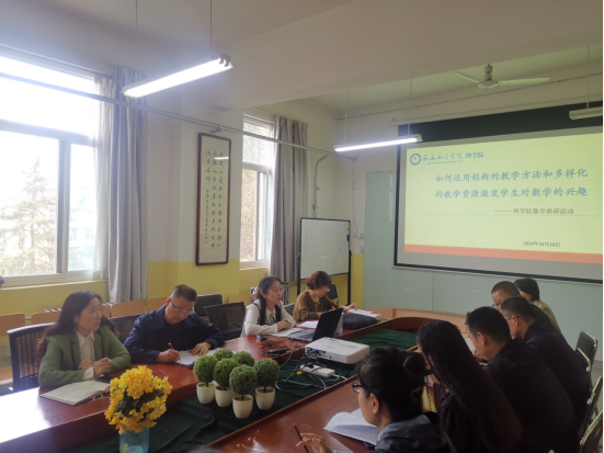 在当今教育领域,如何有效提升学生对数学的兴趣和学习成绩,已成为教师共同关注的焦点。2024年10月18日下午,澳门网投官方网站数学教研室举办了主题为“如何运用创新教学方法和多样化的教学资源激发学生对数学兴趣”的教研活动。旨在探讨基于OBE理念的教学策略,以及如何运用创新的教学方法提高学生的学习成绩和自主学习能力。本次教研活动由数学教研室主任杨青主持,会议邀请了校级教学督导雒新峰老师、澳门网投官方网站教学副院长韩慧蓉参加,数学教研室全体教师参加了会议。
