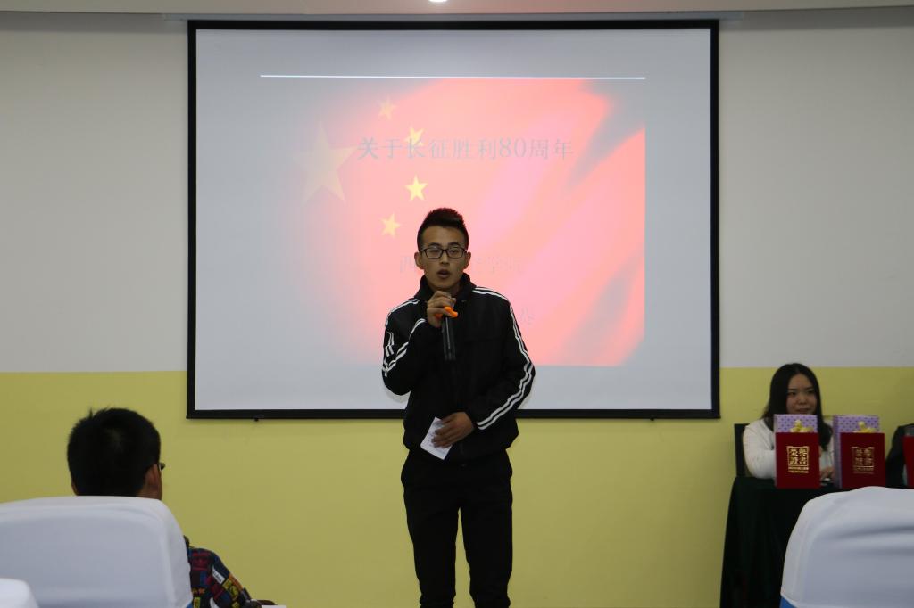 为纪念红军长征胜利80周年,引导广大师生追红色记忆、寻红色足迹、承红色精神,让红色基因代代传,培育和践行社会主义核心价值观,10月7日,澳门网投官方网站在南108教室举办了纪念红军长征胜利80周年主题演讲比赛澳门网投官方网站团总支书记兼辅导员杨陈东以及各兄弟院系的团总支副书记担任了本次比赛的评委
