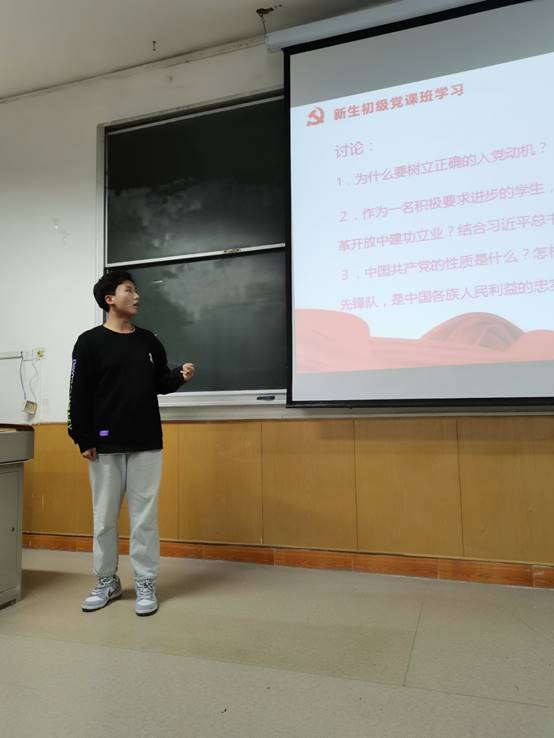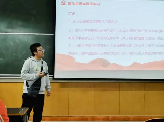 丁琦为大家讲解了当代大学生与中国共产党的密切联系以及对学生党员的具体要求。