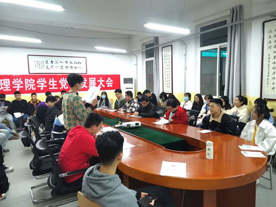 2021年11月3日晚18点30分,澳门网投官方网站学生党支部在教学南楼428会议室召开第十期学生党员发展大会,会议由澳门网投官方网站学生党支部书记李扬主持。学生党支部全体党员、预备党员以及发展对象参加了此次会议,会议主题为讨论发展张英、李凡、强博思、王文科、史小茹、张宏飞、王曦莹七名同志为党员的问题。