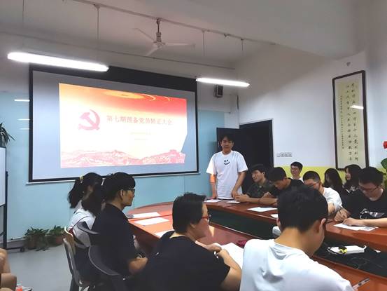 大会开始之前,由张岩老师清点参会人数,并介绍支部成员。随后,十名同学依次宣读了转正申请,支部成员对这十名同学分别进行了民主评议;评议过后,所有正式党员进行无记名投票,票决结果一致同意发展曹盼盼等十名同志按期转为正式党员,李扬老师代表支部宣读了表决决议,最后,李扬老师对毕业班党组织关系转接进行了说明,鼓励大家再接再厉,在自己的岗位上做好表率,发挥模范带头作用。