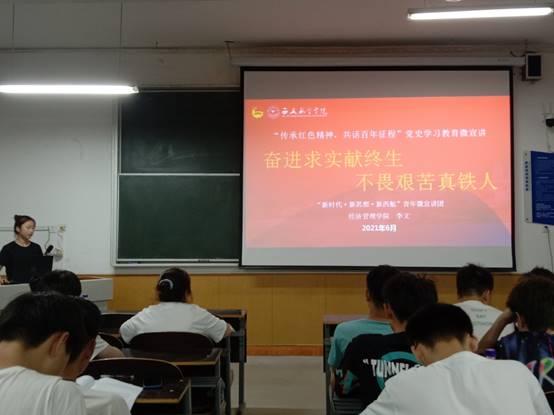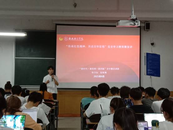 2021年6月8日,澳门网投官方网站于南楼307教室举办了“传承红色精神,共话百年征程”党史学习微宣讲,此次宣讲会由杨洁主持,澳门网投官方网站全体大一学生参加。