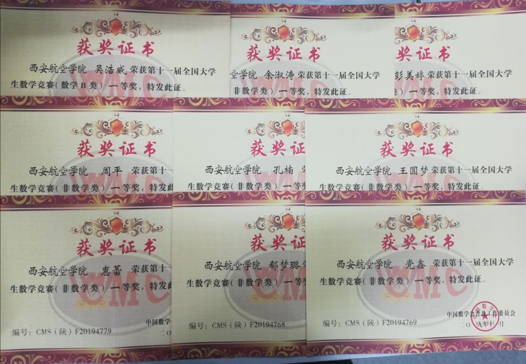 2019年第十一届全国大学生数学竞赛成绩揭晓,澳门网投官网共获82项奖项,其中陕西省一等奖17项、二等奖30项、三等奖35项,其中数学类获省级一等奖1项,省级二等奖1项,省级三等奖3项,本次竞赛是澳门网投官网第四次参赛,也是历年来参加人数和获奖人数最多的一次。