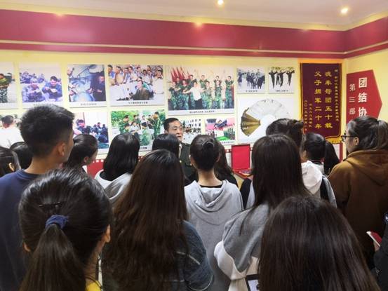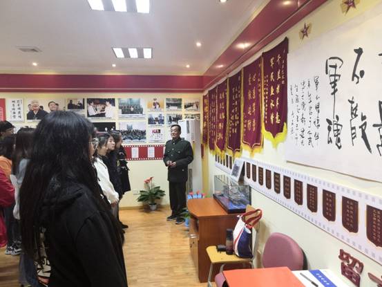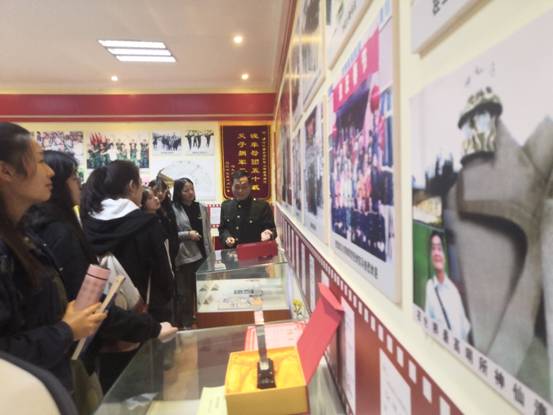李新建老师从情系军营、拥军之路、团结协作和拥军硕果四部分对同学们进行了讲解,从基地中的每个照片、字画、锦旗以及各项荣誉证书都有着自己的一份故事,都是李新建老师长达18年拥军生涯的一个缩影。自1998年以来,李新建老师和他的文化拥军艺术团通过坚持不懈的努力,赢得了部队官兵的一致好评。中央电视台曾多次报道了他们的事迹,《解放军报》《香港文汇报》《人民日报》《人民军队报》等媒体也相继对他们进行了报道。李新建和他的同事们先后被军队的多个团级单位聘请为艺术指导、文化艺术客座教授、革命传统教育辅导员,并授予“荣誉军人”的光荣称号。