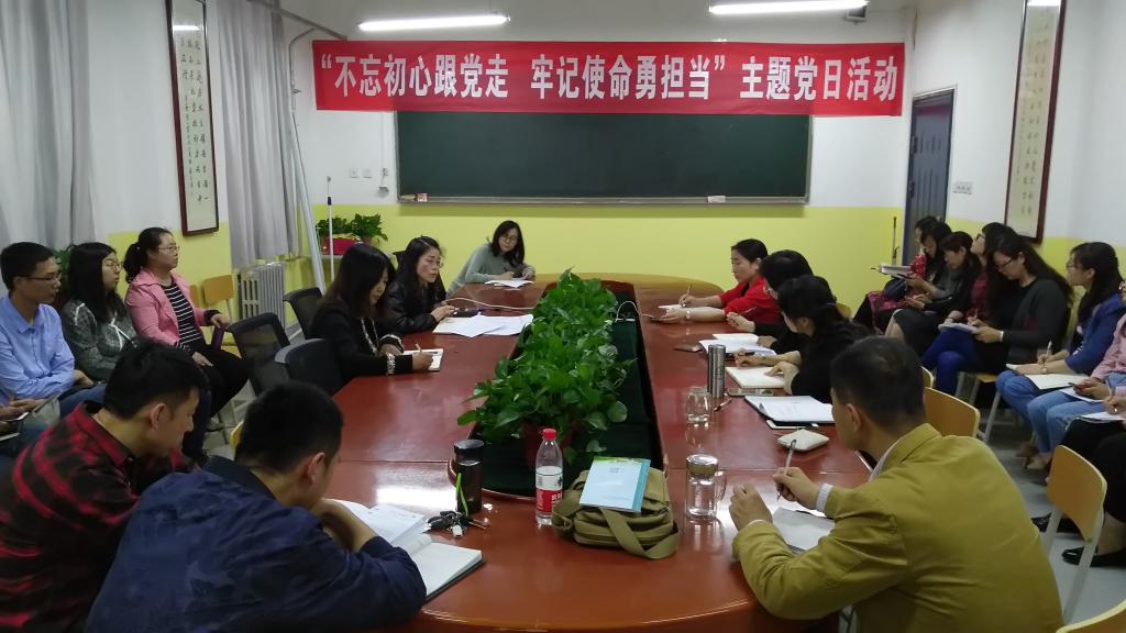 5月10日下午,澳门网投官方网站教工党支部结合本科合格评估在教学南楼428会议室开展了“不忘初心跟党走,牢记使命勇担当”的主题党日活动。澳门网投官方网站党总支书记李小光、教工党支部书记丁琦和教工党支部所有党员参加会议。会议由丁琦主持。