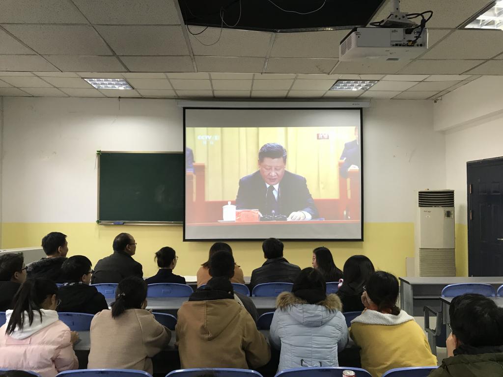 2018年12月18日,澳门网投官方网站党总支于南教学楼408教室,集体观看和学习了庆祝改革开放40周年大会直播,党总支书记李小光,院长岳忠玉,副院长丁琦,学生党支部书记曹建波,团总支书记、辅导员杨陈东,部分党员教师以及学生党员、积极分子共20余人参加了此次观影活动。