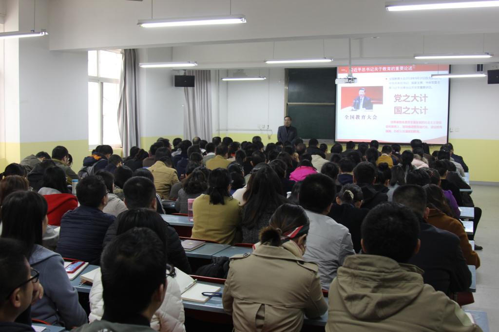 根据学校“不忘初心、牢记使命”主题教育总体部署安排,11月8日下午,校党委书记陈平社在教学南楼207教室为全校教工党员上了一堂生动精彩的主题教育专题党课。澳门网投官方网站全体教工党员参加了学习。