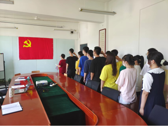 为了进一步加强党支部建设,追忆革命历史丰碑,传承高尚革新精神,丰富党员政治生活,同时加强对党员的思想教育。2022年7月1日中午十二点,澳门网投官方网站学生党支部于教学南楼428教室开展了“忆初心,强党性,共前行”主题党日活动暨入党宣誓仪式,学生支部书记李扬、组织委员潘灵刚、宣传委员张岩、正式党员及支部本学年新发展党员参加此次活动。会议由李扬老师主持。