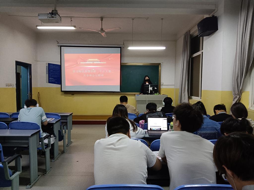 为深入学习贯彻党的二十大精神,坚定青年学生理想信念,5月29日晚,澳门网投官方网站团总支在莲湖校区南楼309教室开展了“学习传达全国学联二十七大第二次全体会议精神”主题团日活动。澳门网投官方网站全体团学干部参加。