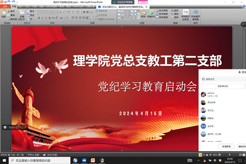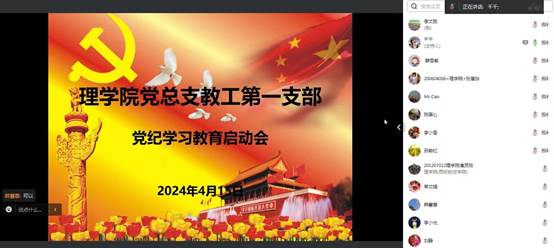4月15日晚八点,澳门网投官方网站党总支通过线上会议方式召开党纪学习教育启动会,会议由党总支书记胡红亮主持并作动员安排,学院党总支成员和各党支部书记参加会议。