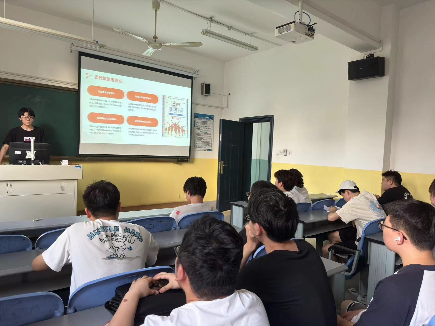今年是五四运动105周年,主持人通过PPT、视频等多种形式,带领大家重温五四运动那段激情燃烧的岁月,深刻理解爱国、进步、民主、科学的五四精神内涵。围绕“五四精神与志愿服务”同学们展开了热烈讨论,同时同学们分享了自己在志愿服务活动中的心得体会,通过亲身参与更加明白了志愿服务的重要价值,也更加坚定了自己投身社会公益事业的决心,纷纷表示要继承和发扬五四精神,用自己的实际行动为实现祖国富强、民族振兴贡献力量。