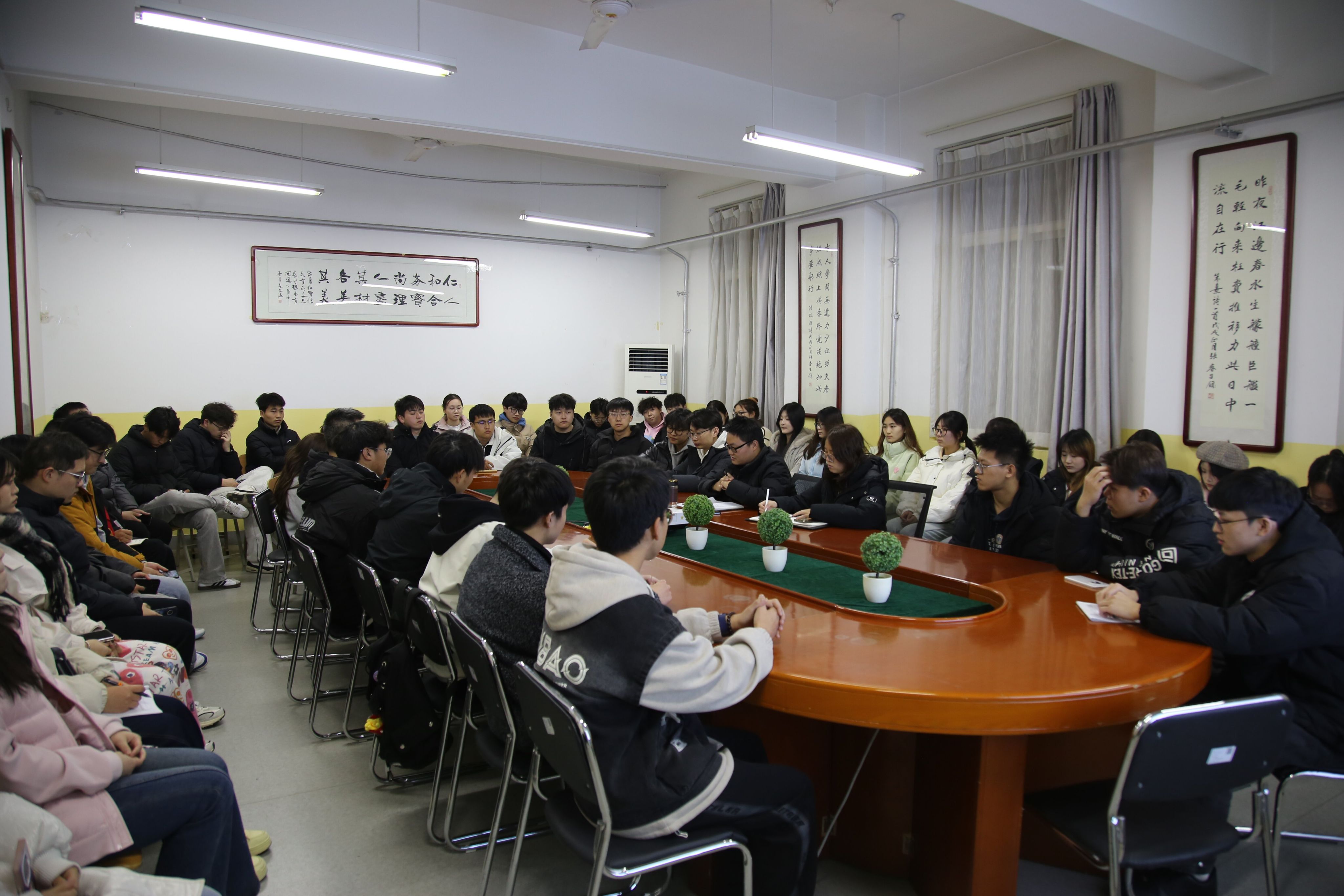 首先王向阳领学了《求是》杂志发表的习近平总书记重要文章《进一步全面深化改革中的几个重大理论和实践问题》,对新时代新征程党和国家的中心任务进行了讲解。随后围绕近期重点开展的入党推优、寒假社会实践活动材料收集和“启航杯”大学生创新创业竞赛等工作做了安排部署,并对新学期团学工作做出要求:一是要持续深化思想引领,通过形式多样的活动,引导青年学生坚定理想信念;二是要积极搭建实践平台,鼓励各团支部成员积极参与社会实践、志愿服务等活动,提升社会责任感和实践能力;三是要不断加强团学部队伍建设,通过培训、交流等方式,提升团学干部的政治素养、业务能力和工作作风,打造一支高素质、有担当的团学队伍。同时还对新学期返校确认,教材领取,学生补考、重修,晚自习出勤及教室卫生等做了提醒。