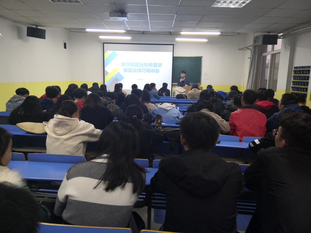 为进一步做好毕业生就业指导工作,2019年11月12日下午,澳门网投官方网站在教学南楼405教室召开就业形势宣讲暨就业技巧培训会。会议由澳门网投官方网站团总支书记、辅导员杨陈东主持,大三大四所有学生参加会议。